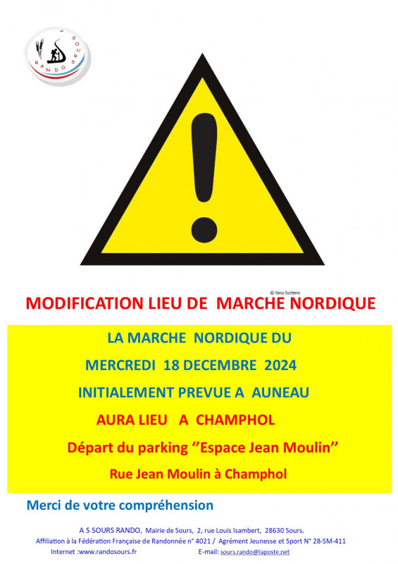 Marche Nordique "Modification lieu de la marche"